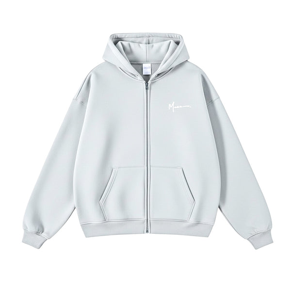 Designed for comfort and style, this oversized zip-up hoodie features a plush interior, spacious hood, and sleek embroidered logo.